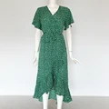 Women Dresses Summer 2020 Sexy V Neck Floral Print Boho Beach Dress Ruffle Short Sleeve A Line Mini Dress Wrap Sundress Robe