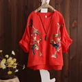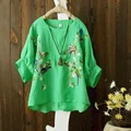 Blouse Women Plus size Cotton Linen Shirts Ladies Tops Casual Chinese Phoenix Vintage Embroidery Long sleeve
