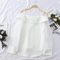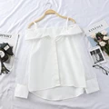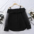 HELIAR Chiffon Shirt Transparent Sleeve Slash Shoulder Spaghetti Tops 2020 Spring Buttoned Up Blous