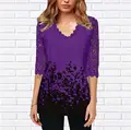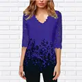 Shirt Blouse Women Plus size 5XL Fashion New Spring Summer print Black Tops 3/4 Lace Sleeve Elasticity Female Shirt Casual