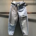 Hole jeans women 2020 summer new fashion high waist ankle length printed harem pants plus size