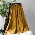 Special Price Leather Midi Skirt Woman Pleated Skirts Fashion 7 Colors Elastic Waist parachute Skirt Plus size Ca with Free Shipping Worldwide!
