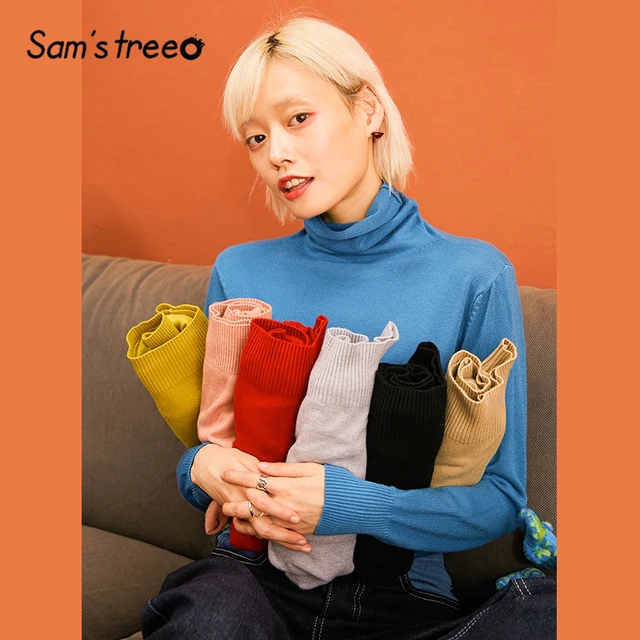 Cheap Price SAM'S TREE Multicolor Solid Minimalist Style Casual Knit Pullover Sweaters Women 2019 Winter Pure L with FREE Shipping Worldwide!