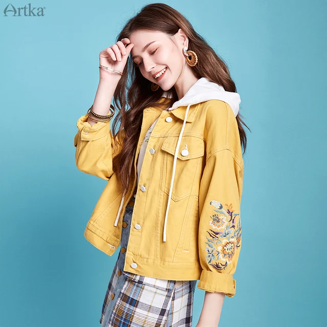 Limited Offer ARTKA 2020 Spring New Women Denim Jacket Vintage Flower Embroidery Hooded Denim Coat Casual Loose D with FREE Shipping Worldwide!