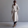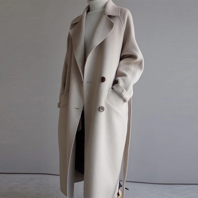Best Price Loose Long Wool Blends Coats Women Winter Casual Sashes Woolen Coat Female Korean Fashion Warm Wool with FREE Shipping Worldwide!